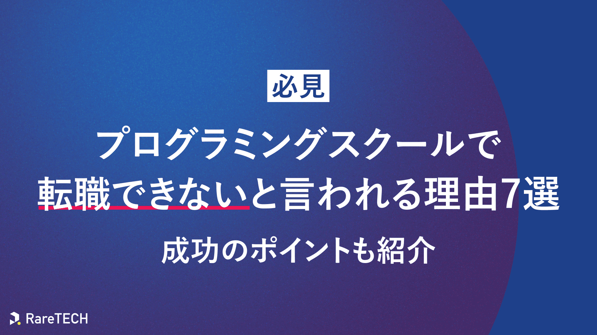 そこで今回は、「プログラミングスクールでは転職できない」と言われる理由について解説します。「転職できない人の特徴」や「転職に成功するためのポイント」も紹介しているので、ぜひ参考にしてください。