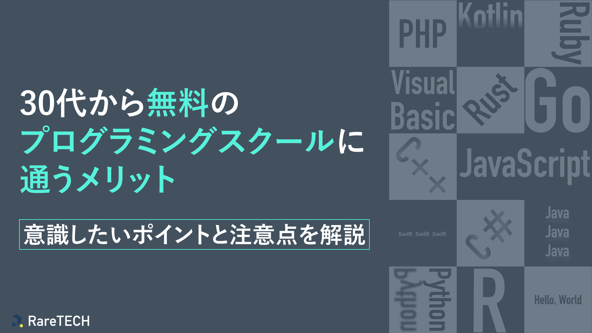この記事では、30代がプログラミングを学ぶ際に考える「無料プラグラミングスクール」について解説しています。スクール選びで意識したいポイントや注意点も紹介しているので、ぜひ参考にしてください。