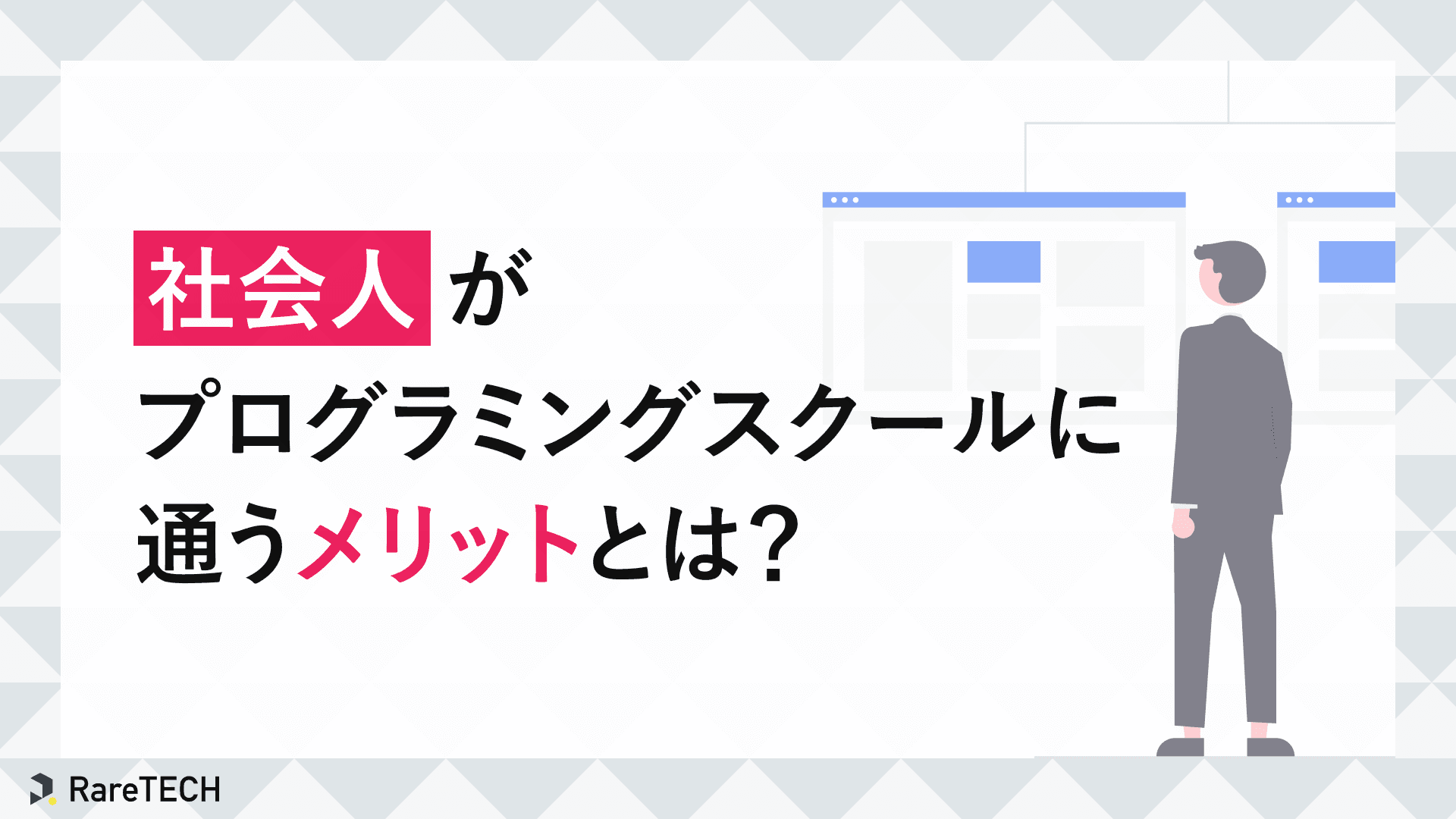 この記事では、「社会人がプログラミングスクールに通うメリット」について解説しています。なぜ通った方が良いのかや、選び方も紹介しているので、ぜひ参考にしてください。