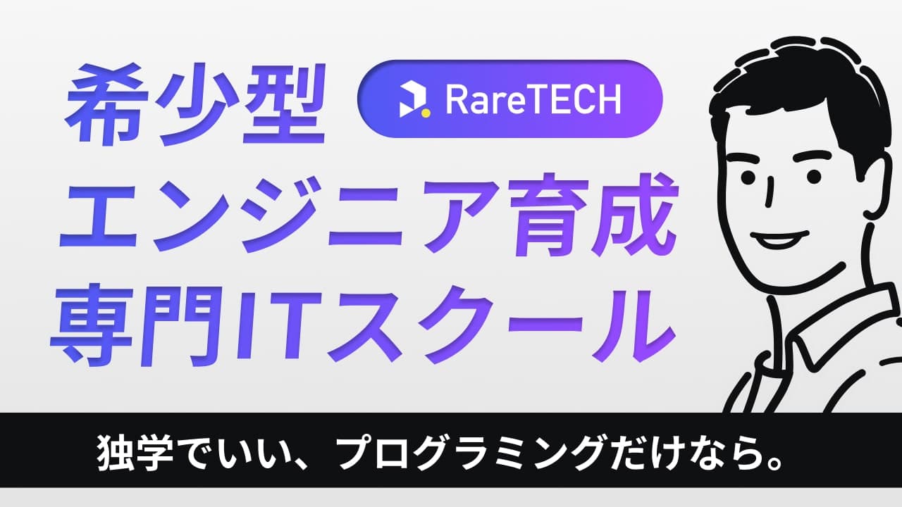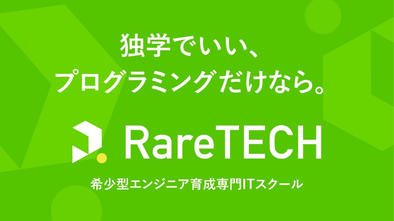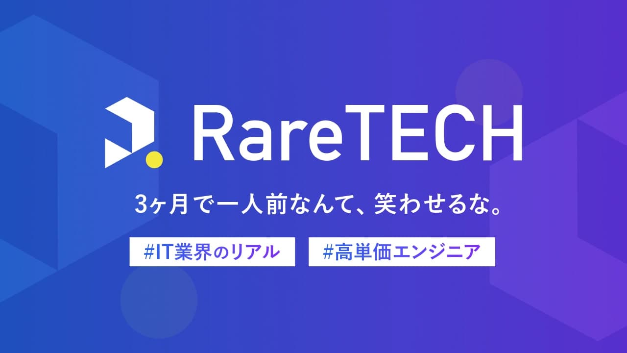 未経験から2年で希少型エンジニアへ。RareTECHは、付け焼き刃での量産型エンジニア転職ではなく、本質スキルで、仕事も私生活も長期で充実させる骨太カリキュラムを提供しています。
